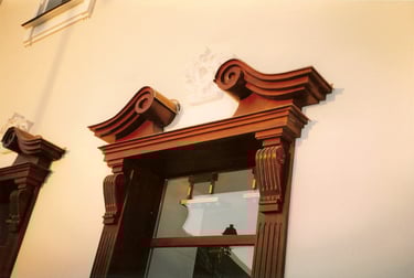 This was my first big opportunity to show what I could do with my chisels. I got the 1912 built palace's original decor’s remains, to re-create all the missing items as they were before. During the ten months of hard work, twenty-one sets of complete decor (one big decor has seven parts), plus some smaller items were done. I wouldn't say I liked it when wood was painted but they had to restore the original look.